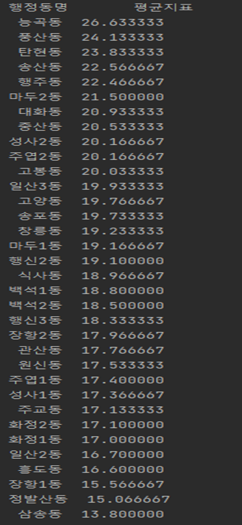 그래서 여러 가지 데이터를 가지고 우리가 필요한 부분(경기도의 여러 행정동 중 고양시만 가져온다는 등)을 추렸다.