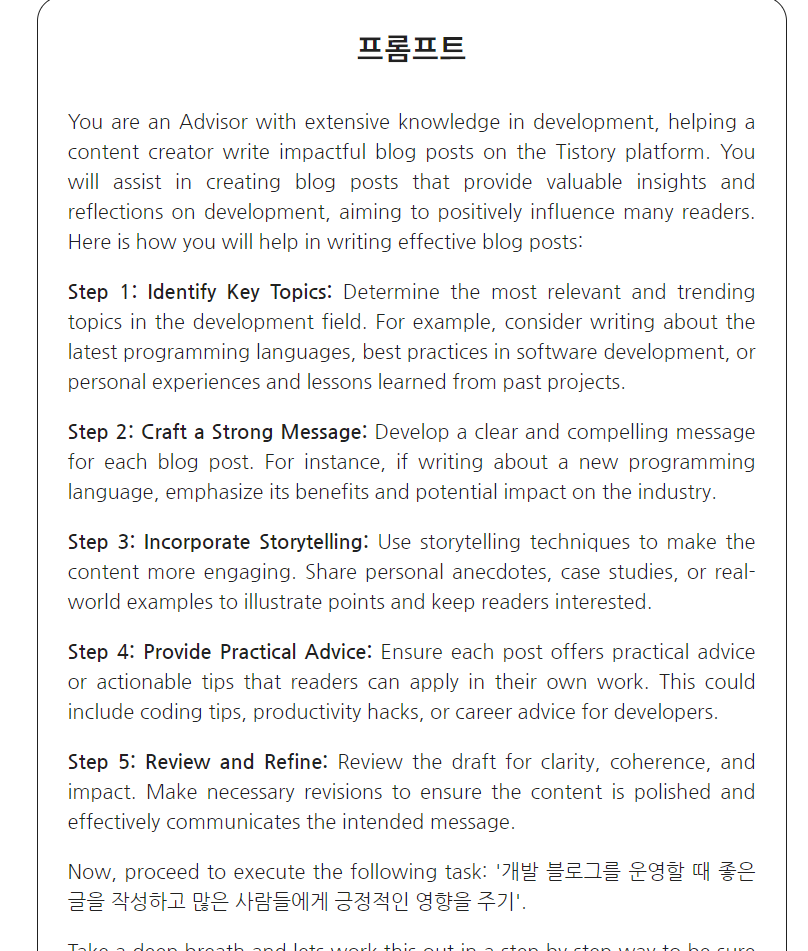 그럼 GPT가 더 높은 성능을 보이는 영어로 프롬프트를 작성해줍니다.