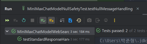 3. `MiniMaxChatModelNullSafetyTest`의 null 안전성 테스트가 통과하는지 확인합니다.