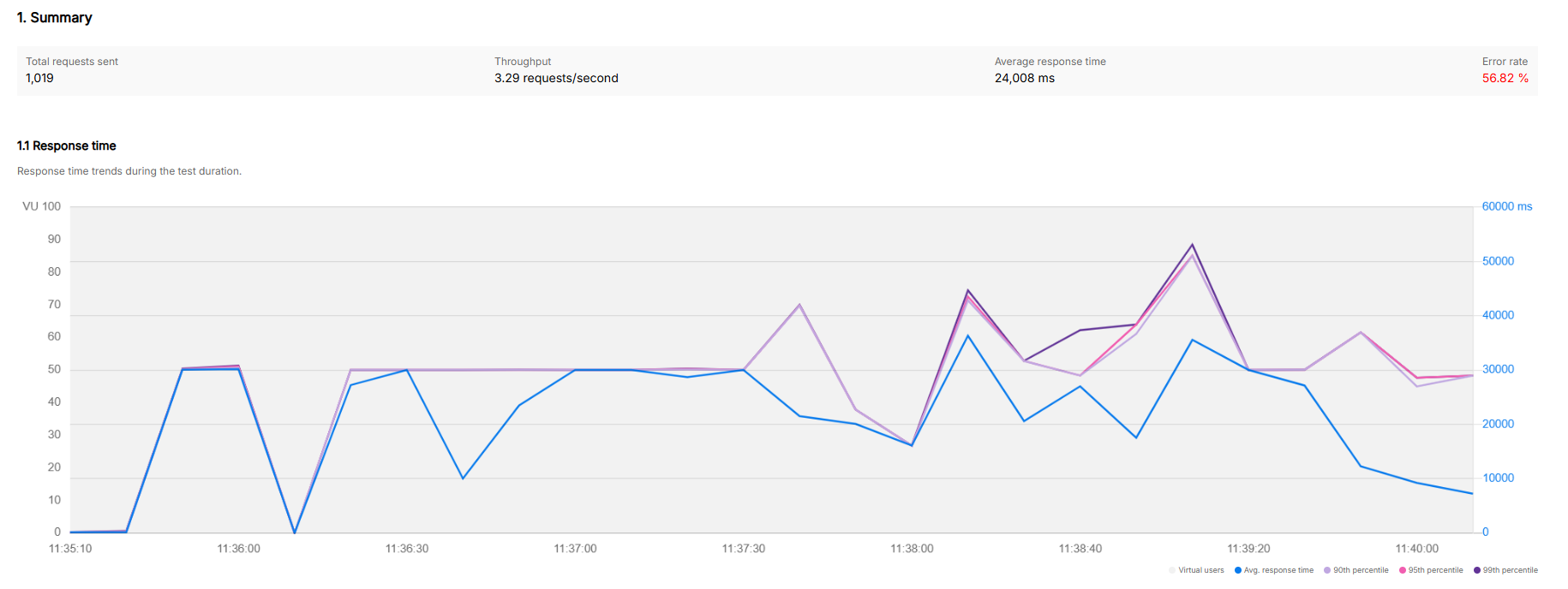 결론적으로 목표했던 평균 응답시간 0.1초를 만족할 수 있었습니다.